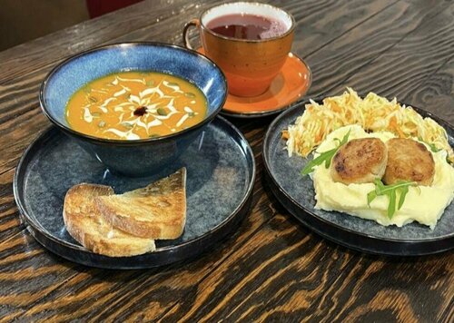 Прекрасное место и обслуживание выше всех похвал ⭐⭐⭐была с двумя детьми, очень все вкусно, шикарный тыквенный кремсуп 🤤 цены 👍👍👍 Большая благодарность поварам, ещё и коляску помогли спустить и поднять по ступенькам ❤️